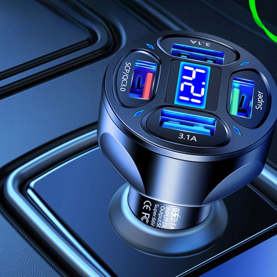 Nie ograniczaj się do jednego urządzenia. Dzięki 4 portom USB możesz ładować kilka sprzętów naraz – idealne dla rodzin, kierowców zawodowych oraz osób korzystających z wielu urządzeń jednocześnie. Komfort i wygoda w każdej podróży.