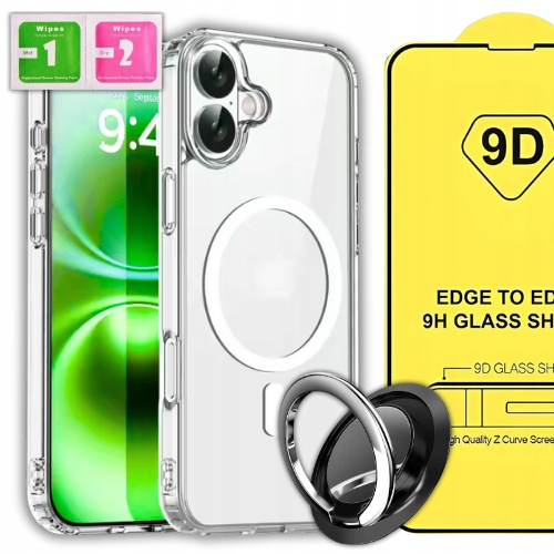 ETUI + SZKŁO 9H WZMACNIANE 360°CLEAR + UCHWYT RING ZESTAW
