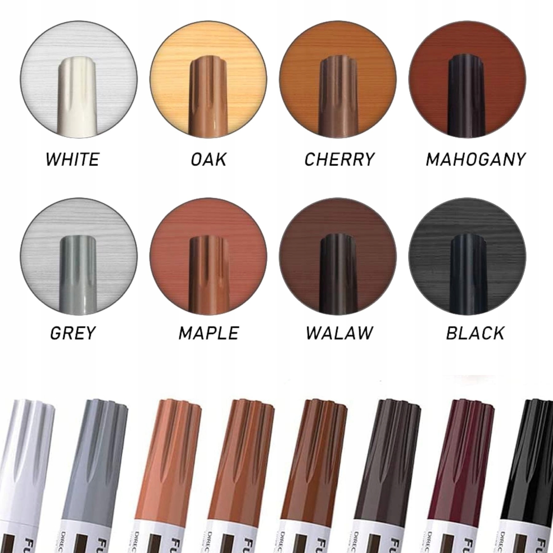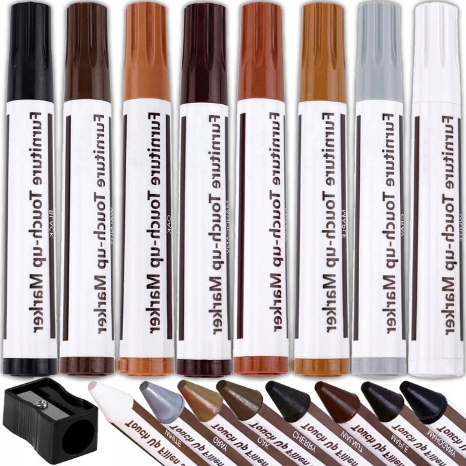 W jednym zestawie otrzymujesz pełne wyposażenie do maskowania rys, pęknięć i ubytków. Woski skutecznie wypełniają uszkodzenia, a markery pozwalają precyzyjnie wyrównać kolor. To praktyczne rozwiązanie zarówno do drobnych poprawek, jak i większych napraw estetycznych.