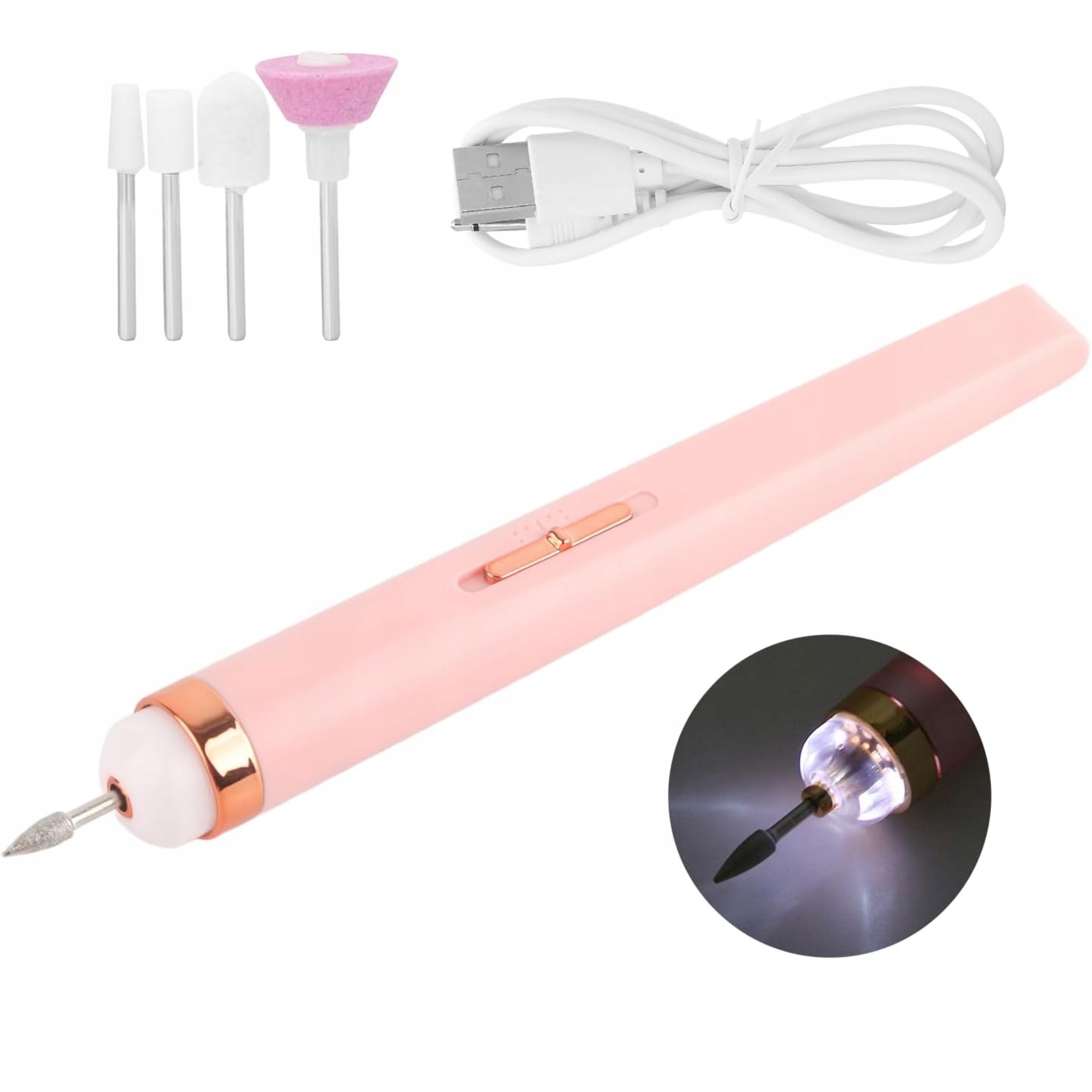 - 1 x akumulatorowa wiertarka do paznokci z światłem led