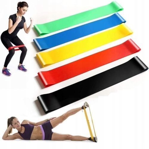 ZESTAW GUM TRENINGOWYCH DO ĆWICZEŃ FITNESS GUMY OPOROWE OBCIĄŻENIOWE - 5 SZTUK !