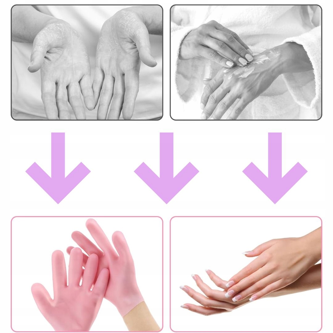 Rękawiczki można stosować z każdym rodzajem kosmetyku: kremem nawilżającym, balsamem regenerującym, serum wygładzającym, olejkiem odżywczym czy preparatem przeciwstarzeniowym. Dzięki temu stają się uniwersalnym narzędziem pielęgnacyjnym dla każdego rodzaju skóry dłoni.