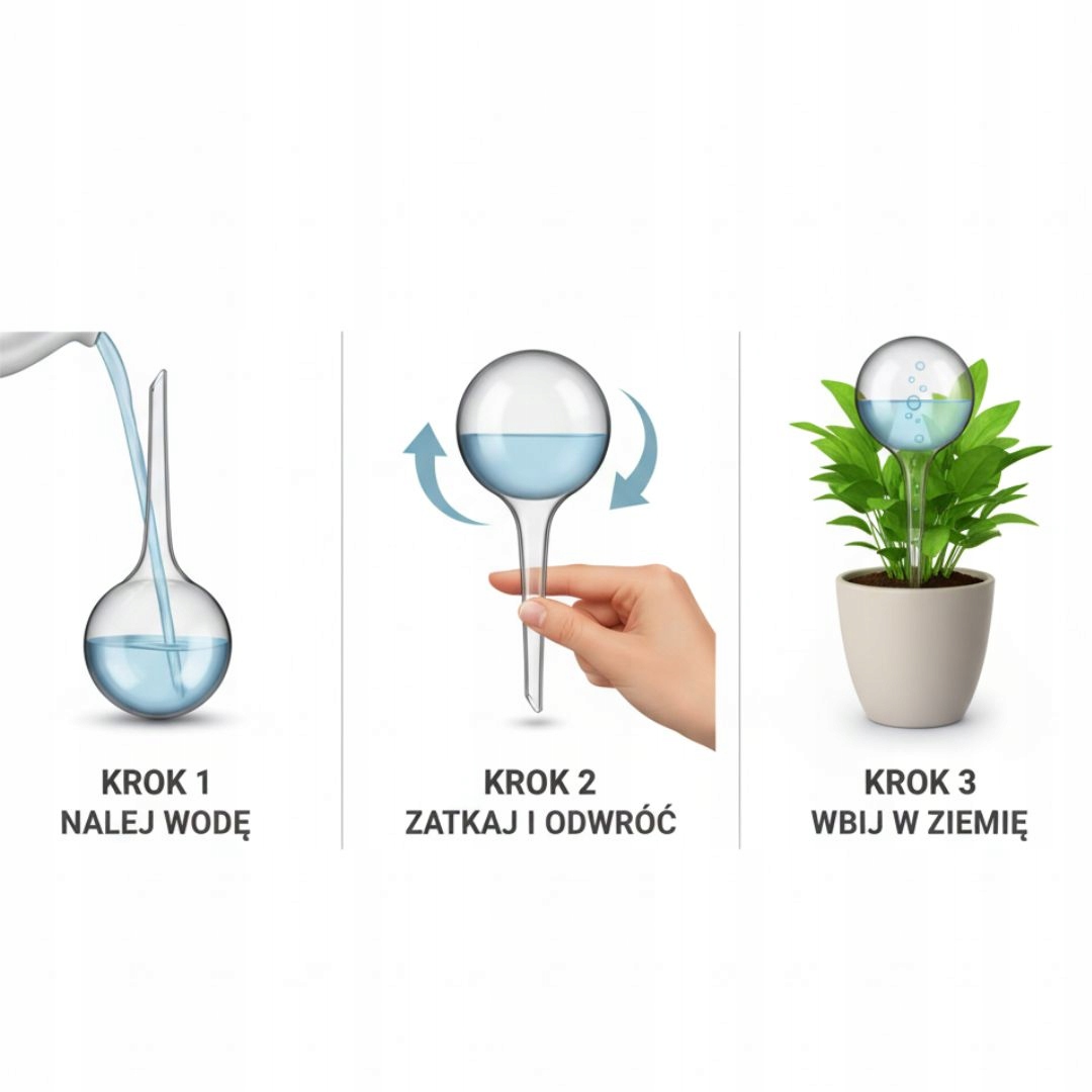 Postaw na wygodę i bezpieczeństwo swoich kwiatów. Kule nawadniające automatycznie dozują wodę dokładnie wtedy, gdy ziemia w doniczce staje się sucha. System działa samoczynnie – roślina pobiera tyle wilgoci, ile faktycznie potrzebuje.